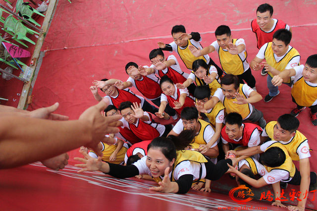 第二个项目“信任背摔”,则是考验团队人员相互的信任感,只有信任团队,放心地交出自己的后背给你的伙伴,以真诚凝聚信心,才能取得大家的成功。
